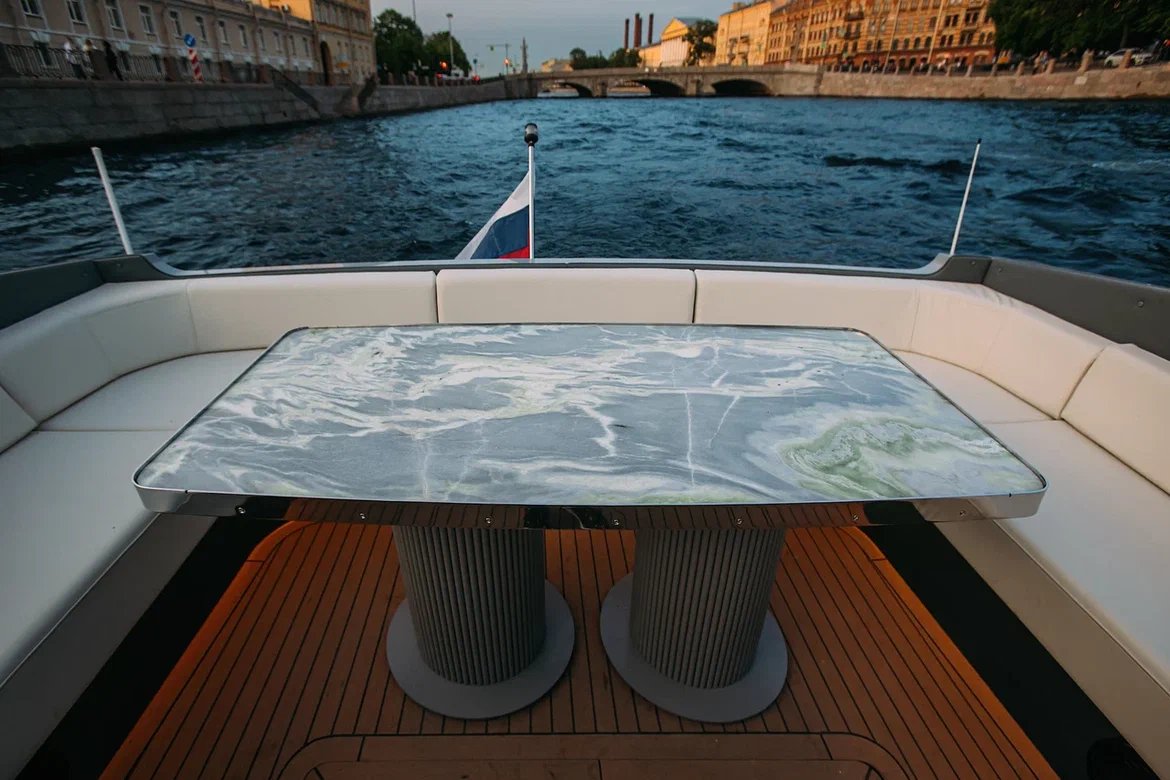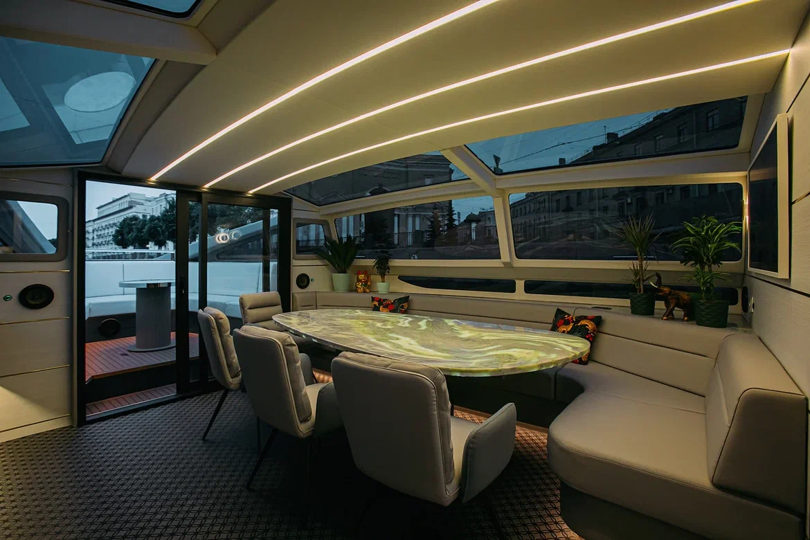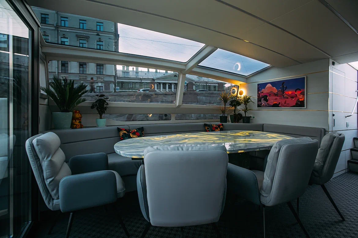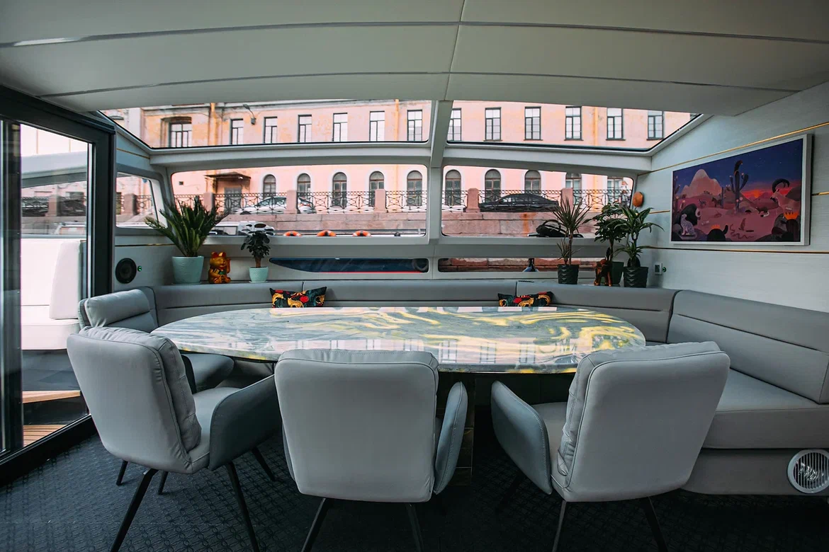 Представьте себе прогулку на новой элегантной яхте «Бангкок», которая сочетает в себе комфорт и стиль, позволяя наслаждаться живописными видами Невы и исторических каналов. Эта яхта условно разделена на три зоны отдыха – как под открытым небом, так и в уютной каюте.