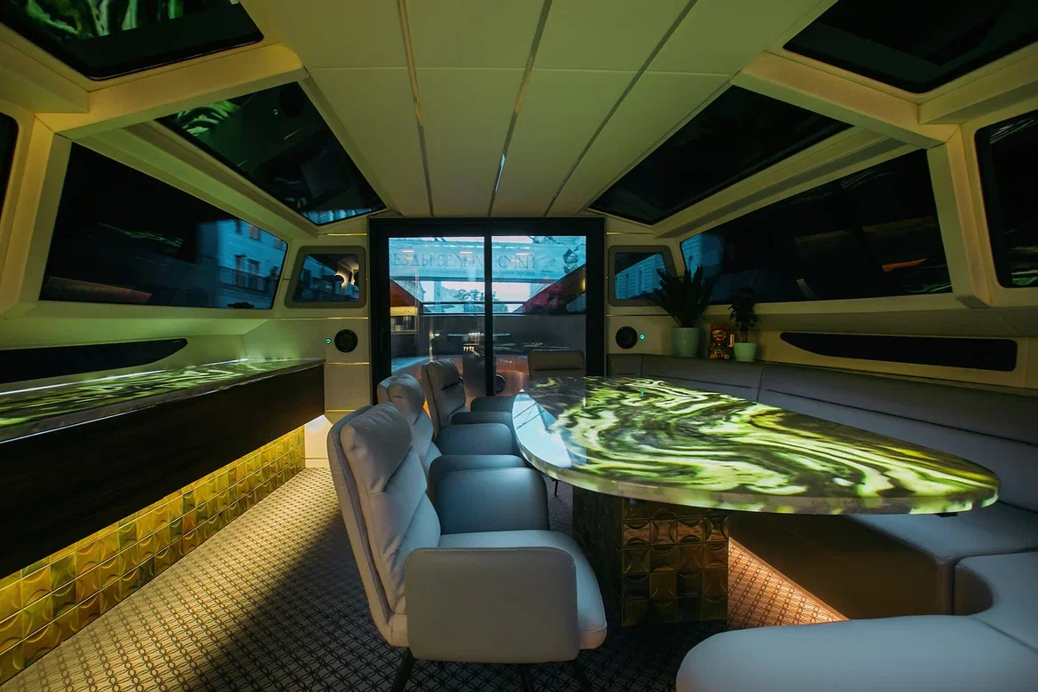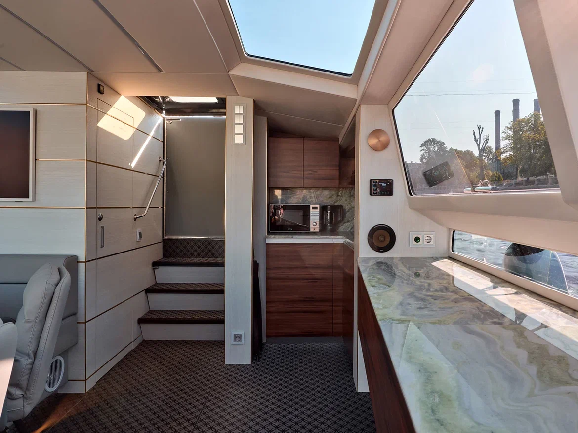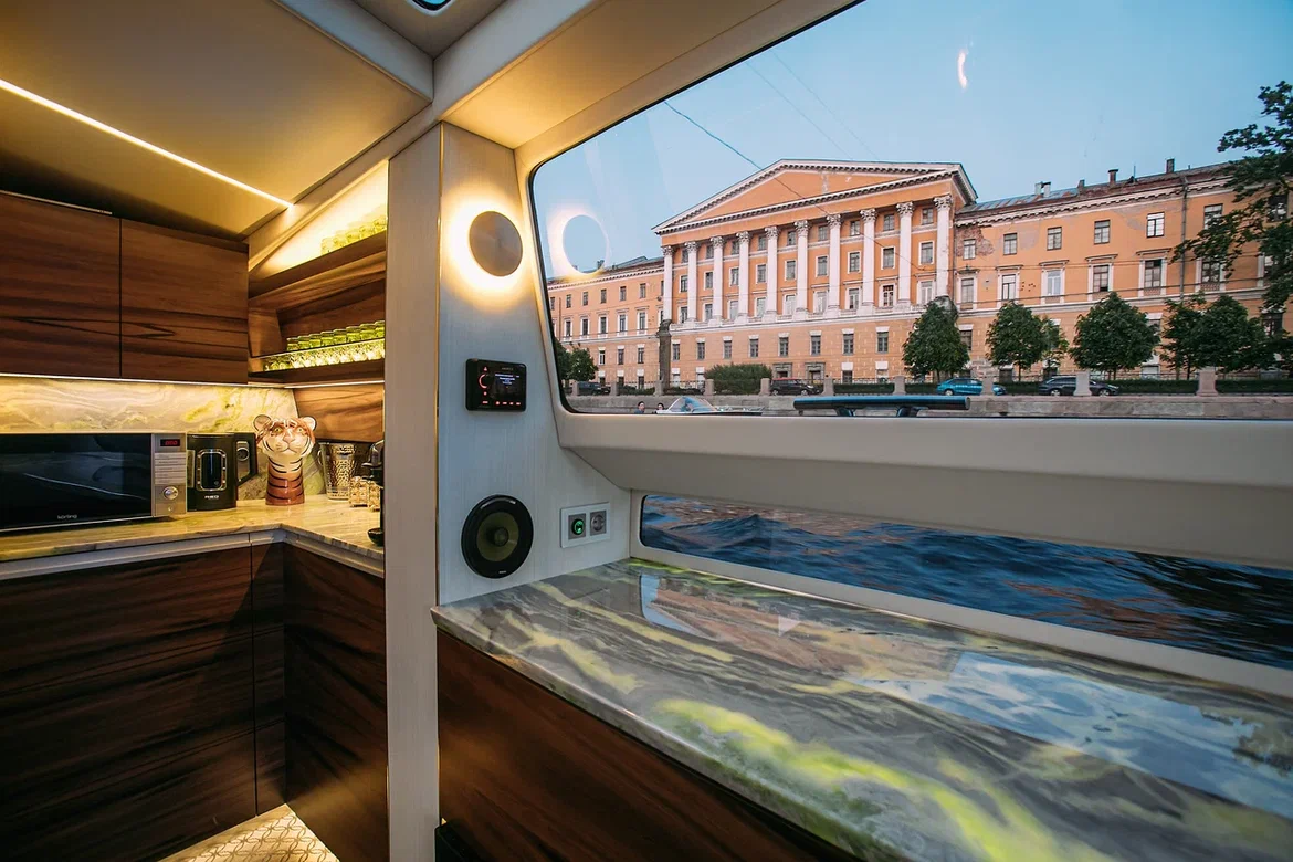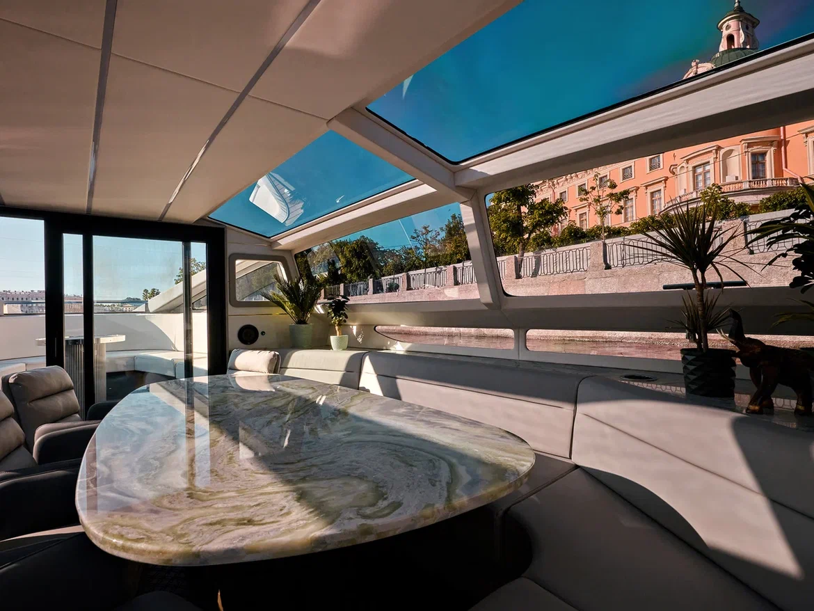 Представьте себе прогулку на новой элегантной яхте «Бангкок», которая сочетает в себе комфорт и стиль, позволяя наслаждаться живописными видами Невы и исторических каналов. Эта яхта условно разделена на три зоны отдыха – как под открытым небом, так и в уютной каюте.