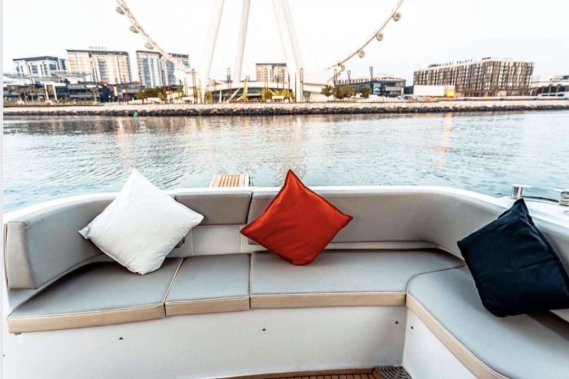 На борту Azimut Magellano 43 вы сможете увидеть самые знаковые достопримечательности Дубая с воды: Dubai Marina - Bluewater Island - Dubai Eye - Jumeirah Beach Residence - Atlantis, the Palm - Atlantis the Royal - Burj Al Arab - Logo Islands