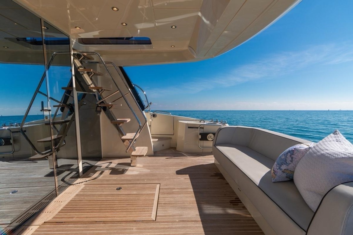 Monte Carlo 6 — современная яхта с просторным флайбриджем и эргономичным дизайном. Оснащенная системой стабилизации Seakeeper, она минимизирует качку и обеспечивает комфорт даже в неспокойной воде.