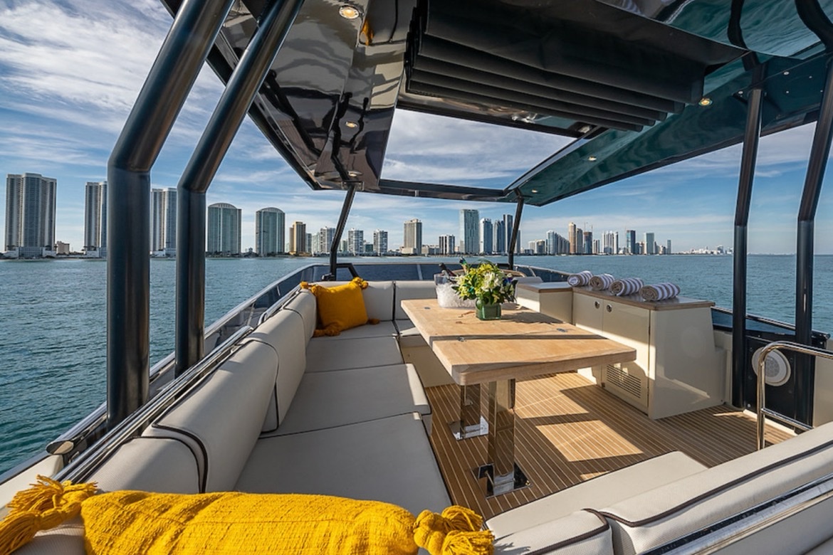 Просторная носовая зона позволяет разместить всех 15 гостей вместе для запоминающихся кадров и ярких моментов. Удобные зоны отдыха делают путешествие приятным независимо от цели — семейный отпуск, деловая встреча или ужин на борту.